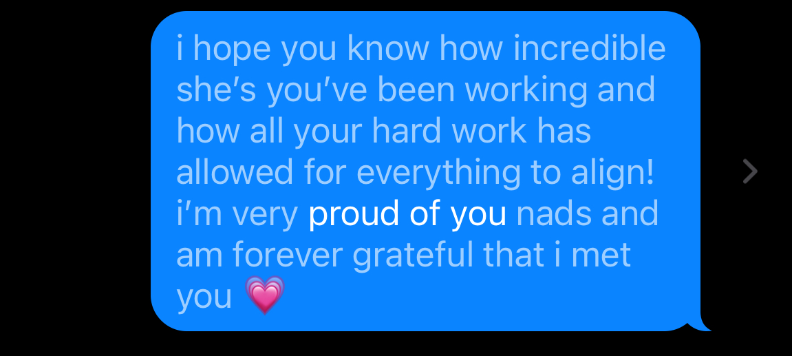 Look in your texts, emails, LinkedIn, letters, and birthday cards for “I’m proud of you” messages, so you can visually see and come back to all the people who are proud of you.
